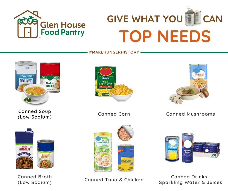 The Glen House Food Pantry provides essential groceries and support to people at risk of hunger through a collaboration of local churches and the broader community.