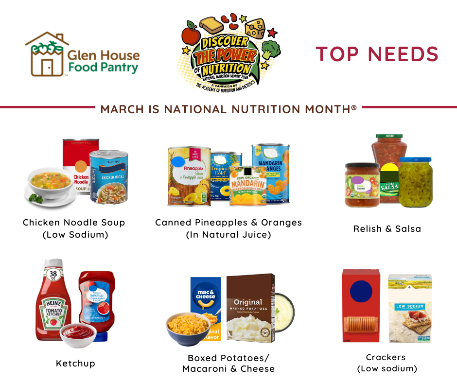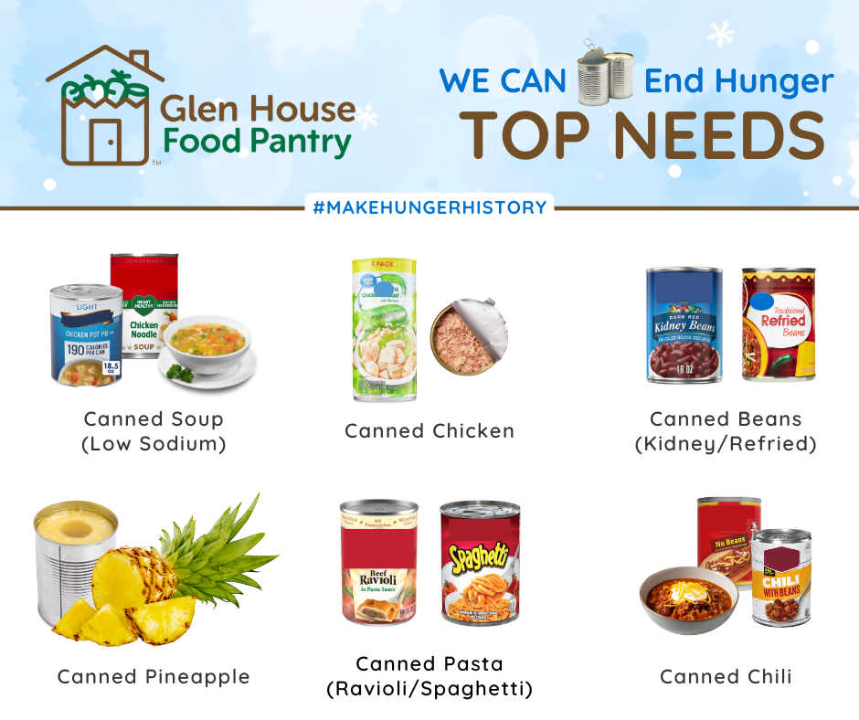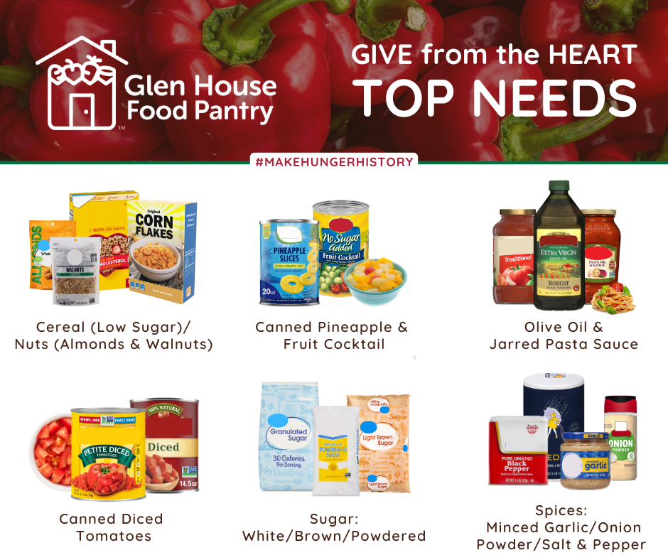 The Glen House Food Pantry provides essential groceries and support to people at risk of hunger through a collaboration of local churches and the broader community.