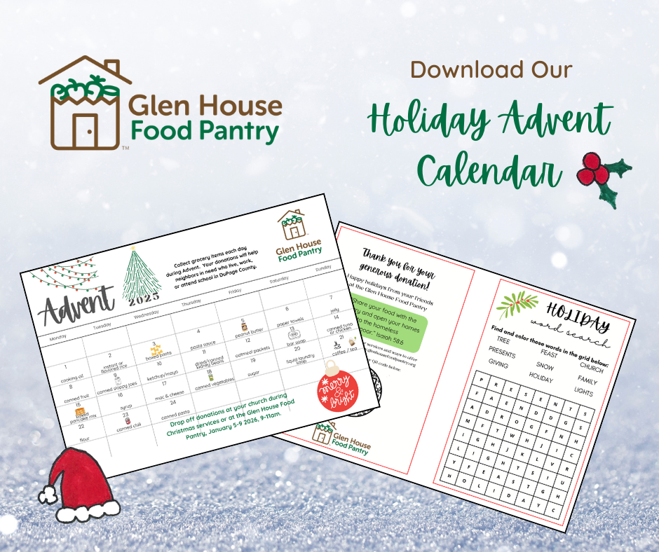Make a difference with our Advent calendar, a fun food drive you can do with your family over the holidays right at home. Simply collect one essential grocery item from November 30 through Christmas Eve. Missed the Nov. 30 start date? No problem! Start your bag of donations any time!